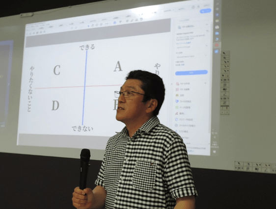 浜田は、2020年1月、北海道中小企業家同友会道北あさひかわ支部を訪問。「元気な社長さんの講義」を高専の学生向けに提供してくれと頼みました。粟田和成・道北あさひかわ支部長(当時)はこれを快諾。